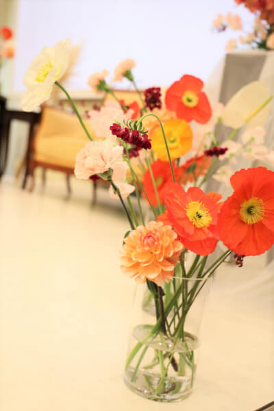会場装花はトレンドのポピーが目を引くコーディネート。