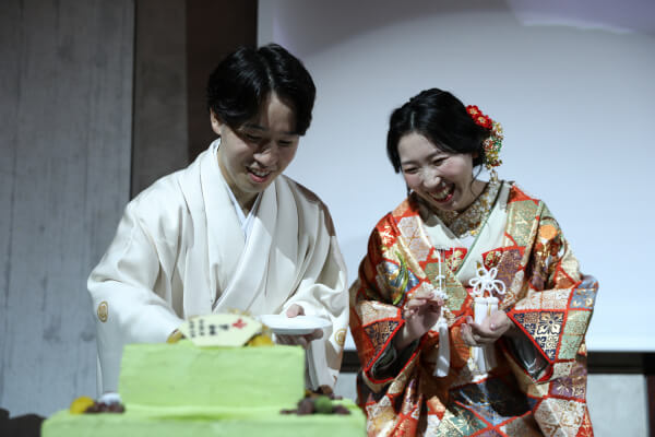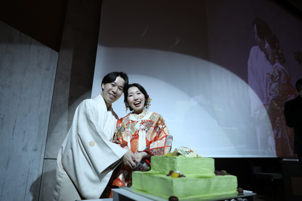 おふたりの前に登場したのは四角い二段の抹茶ケーキ