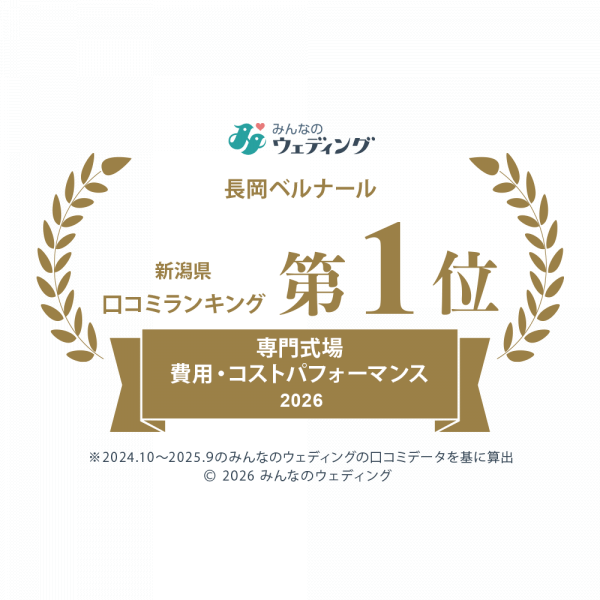 《2026年新潟県 専門式場費用・コストパフォーマンス 1位 》